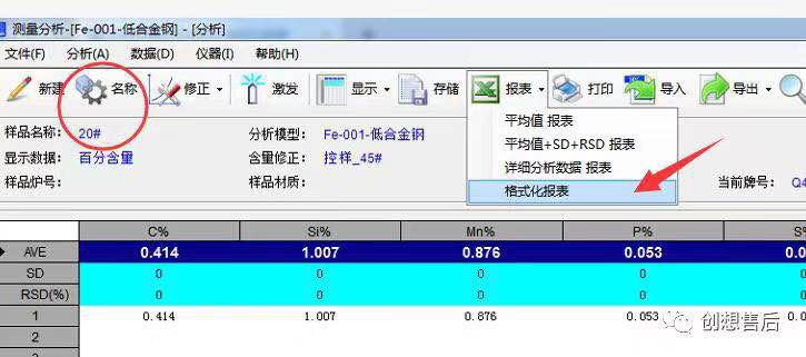 接下來,我們可以分析數據,完成一組數據分析后,設置樣品名稱,點擊報表—格式化報表