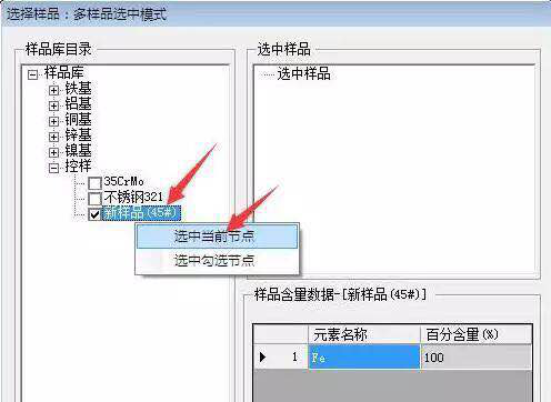 此時,右邊選中樣品區出現“45#”,表示已經選中