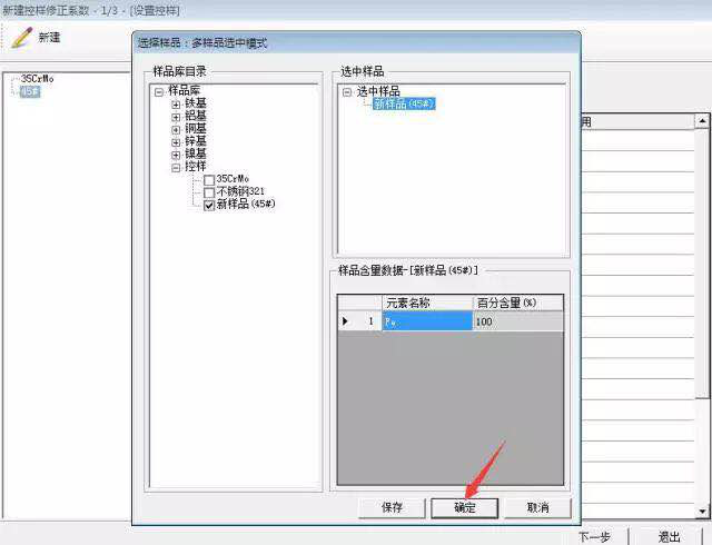 填寫控樣名稱,以添加時的為準,例如之前添加“45#”,當前也填寫“45#”